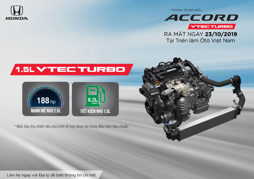 Khả năng vận hành mạnh mẽ: Honda Accord thế hệ thứ 10 là mẫu xe duy nhất trong phân khúc được trang bị động cơ tăng áp VTEC Turbo 1.5L. Động cơ tăng áp được trang bị trên Honda Accord thế hệ thứ 10 sở hữu công suất tối đa 188 Hp tại 5.500 vòng/phút, mang đến khả năng vận hành vượt trội, mạnh mẽ như động cơ 2.5L hút khí tự nhiên với mức tiêu hao nhiên liệu 6,2L/100Km (trong điều kiện đường hỗn hợp tiêu chuẩn), tiết kiệm tương đương động cơ 1.5L, mang lại cảm giác lái phấn khích và tính kinh tế khi sử dụng.