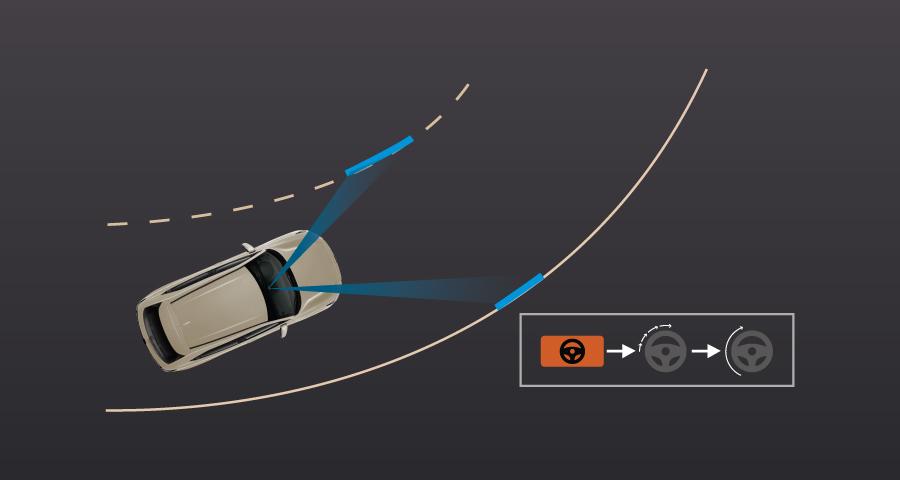 Hỗ trợ đánh lái để giữ cho xe luôn đi ở giữa làn đường, đồng thời hiển thị cảnh báo trong trường hợp xe đi chệch khỏi làn đường.