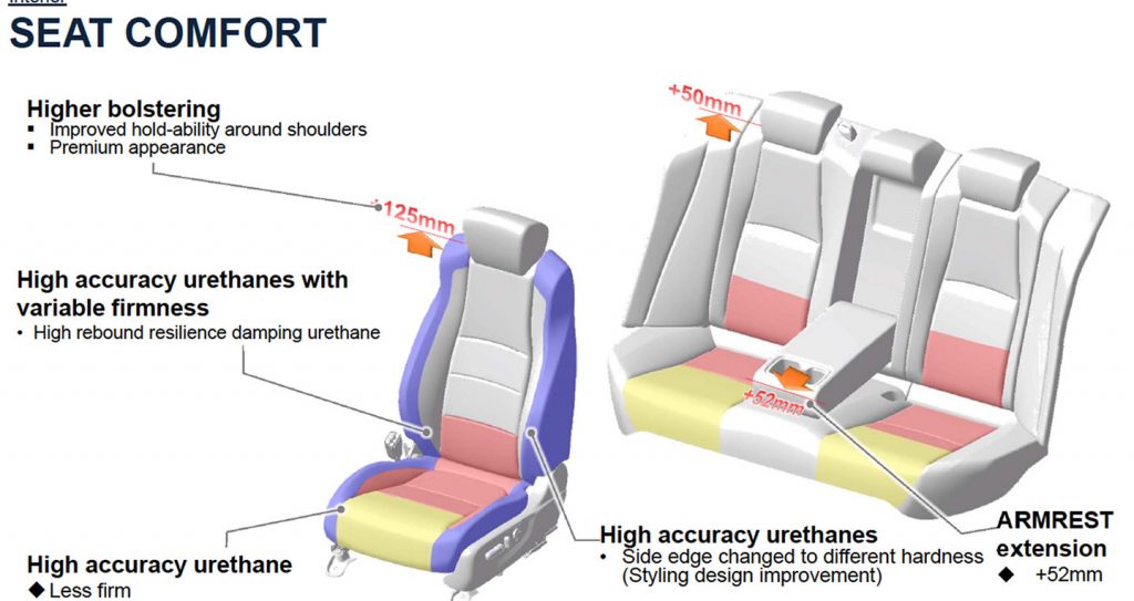 Loại bọt Uretan mới được phát triển trên ghế ngồi của Honda Accord 2019 có độ cứng/mềm khác nhau tùy từng vị trí trên ghế. Theo đó, khu vực hỗ trợ đùi trên ghế ngồi sẽ mềm hơn còn khu vực xung quanh hông sẽ cứng hơn.